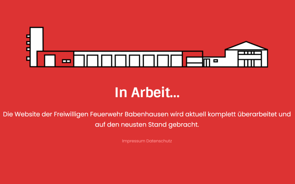 Aktuell überarbeiten wir den Internetauftritt der Feuerwehr Babenhausen. In Zukunft werden hier Beiträge zu Einsätzen, Übungen und Veranstaltungen kommen. Wir freuen uns Sie und Euch an unserem Vereins Leben und Feuerwehralltag bald teilhaben zu lassen.