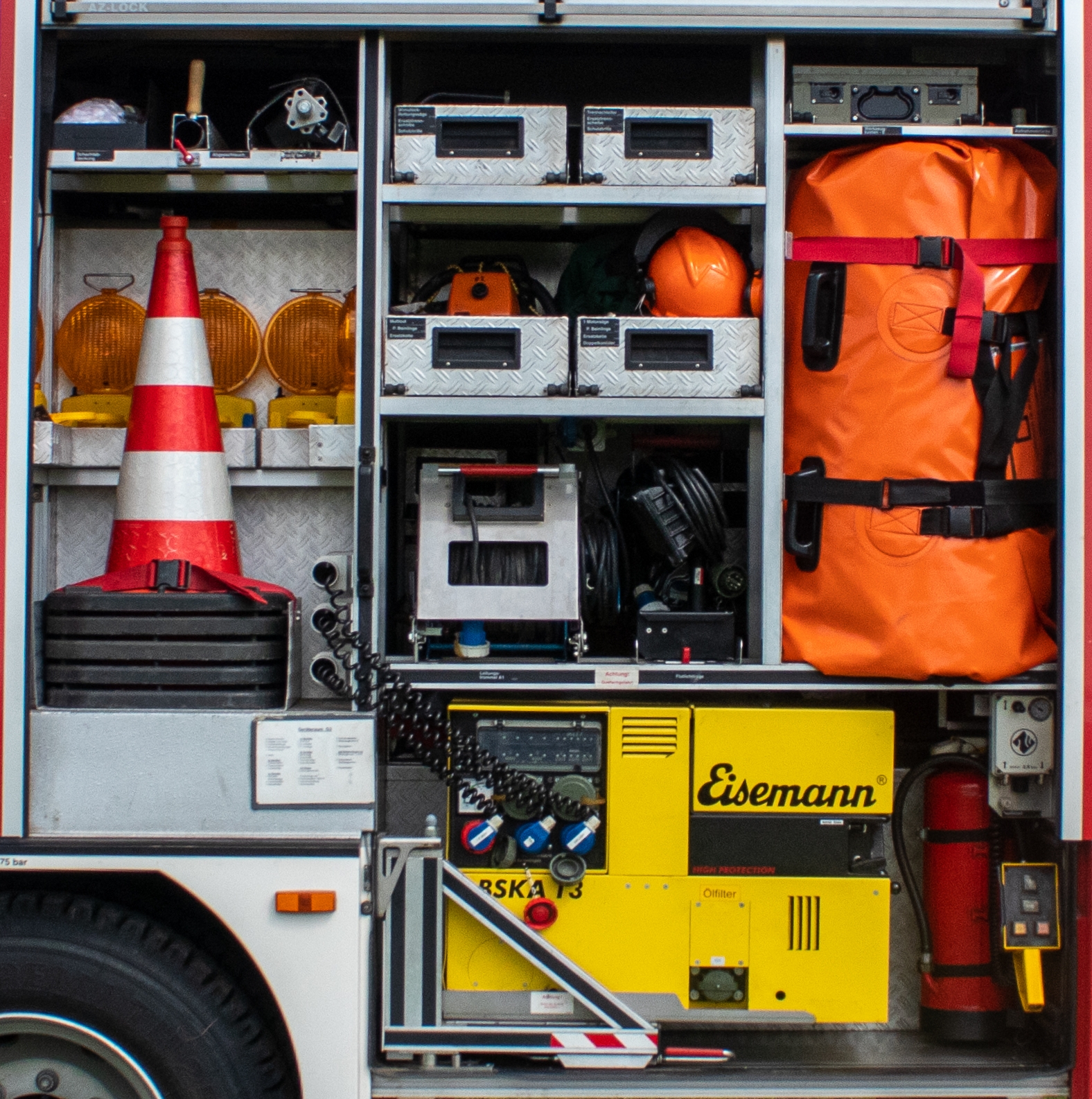 | THL | Rettungssatz (schwer), Satz Rettungszylinder, tragbarer Stromerzeuger mit 13 kVA, Motorsäge, Rettungssäge, Zwillingssäge, Sprungretter, Türöffnungssatz, Hebekissensatz, Höhensicherungsausrüstung und vieles mehr… |