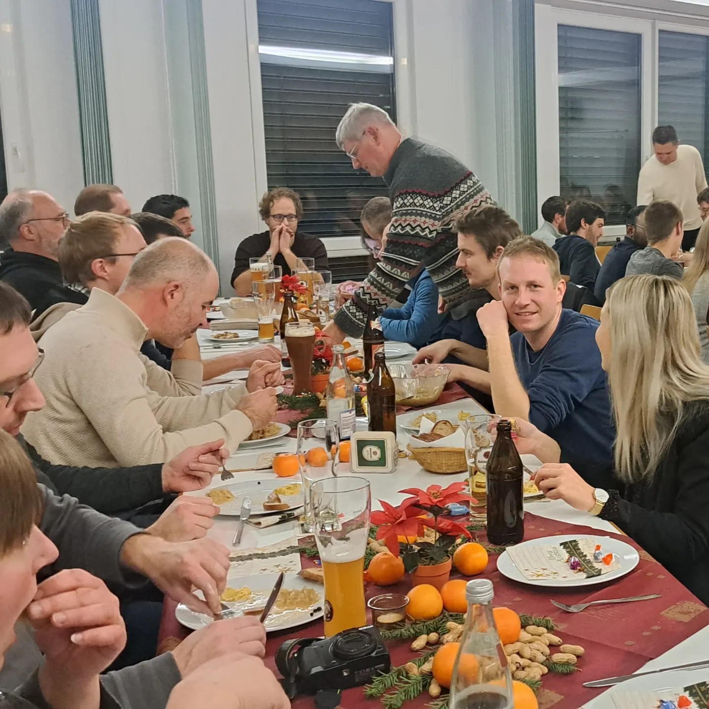 Heute Abend haben wir unsere Weihnachtsfeier. Mit Sauerkraut und Schweinsbratwürstchen wurden wir hervorragend verköstigt. Der Nikolaus kam auch noch auf Besuch und hat den einen gelobt und den anderen getadelt. Ein sehr gelungener und lustiger Abend neigt sich so langsam dem Ende zu. Vielen Dank an alle, die dieses Fest möglich gemacht haben.
