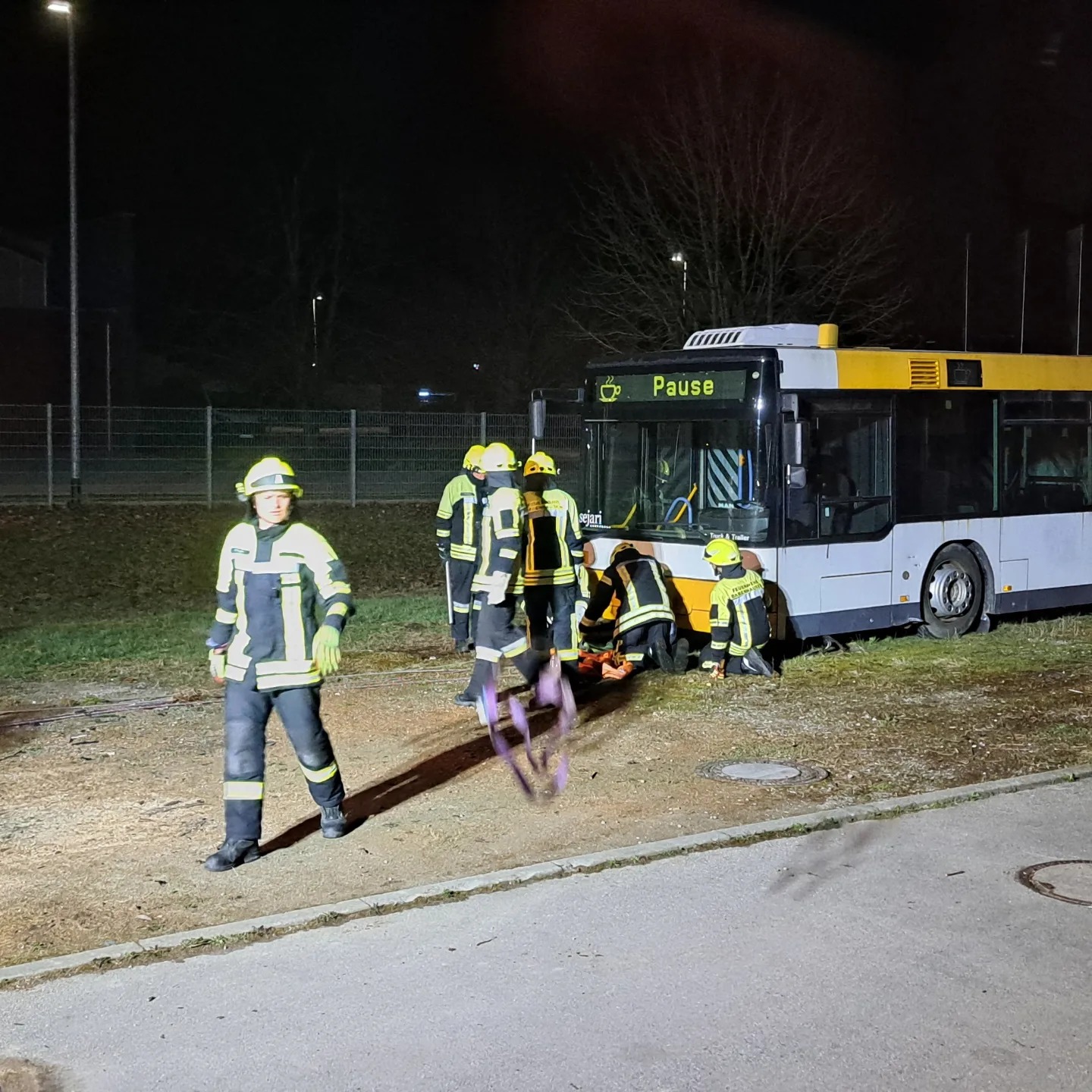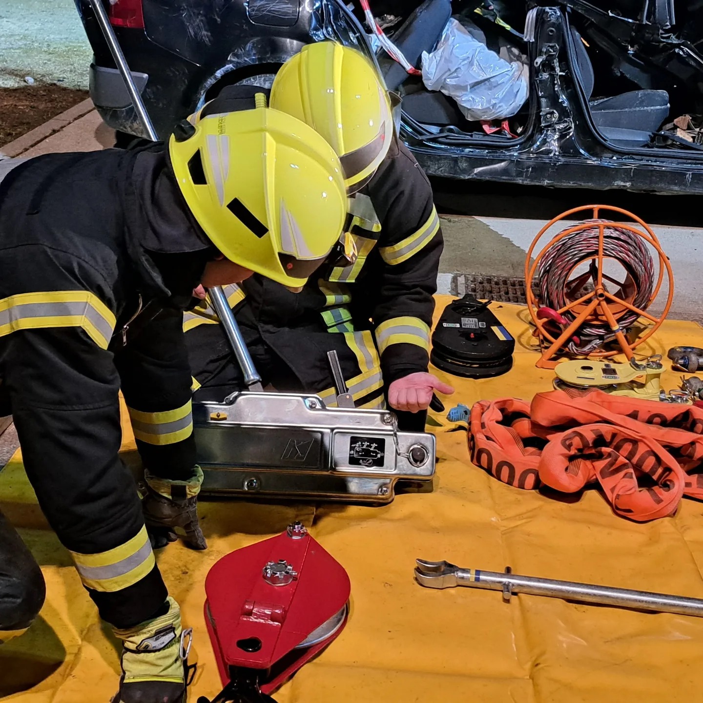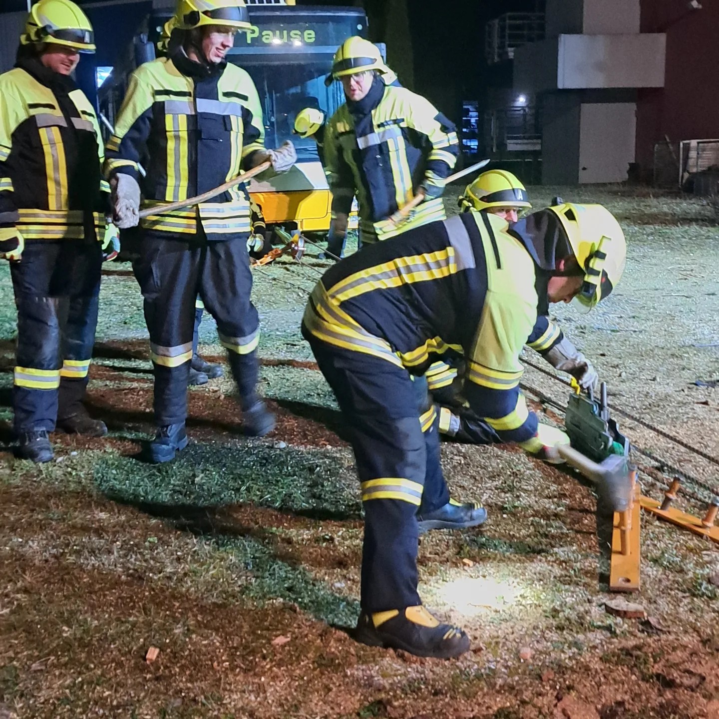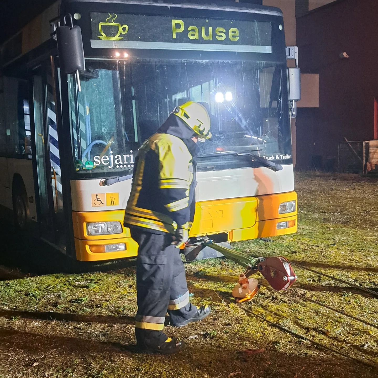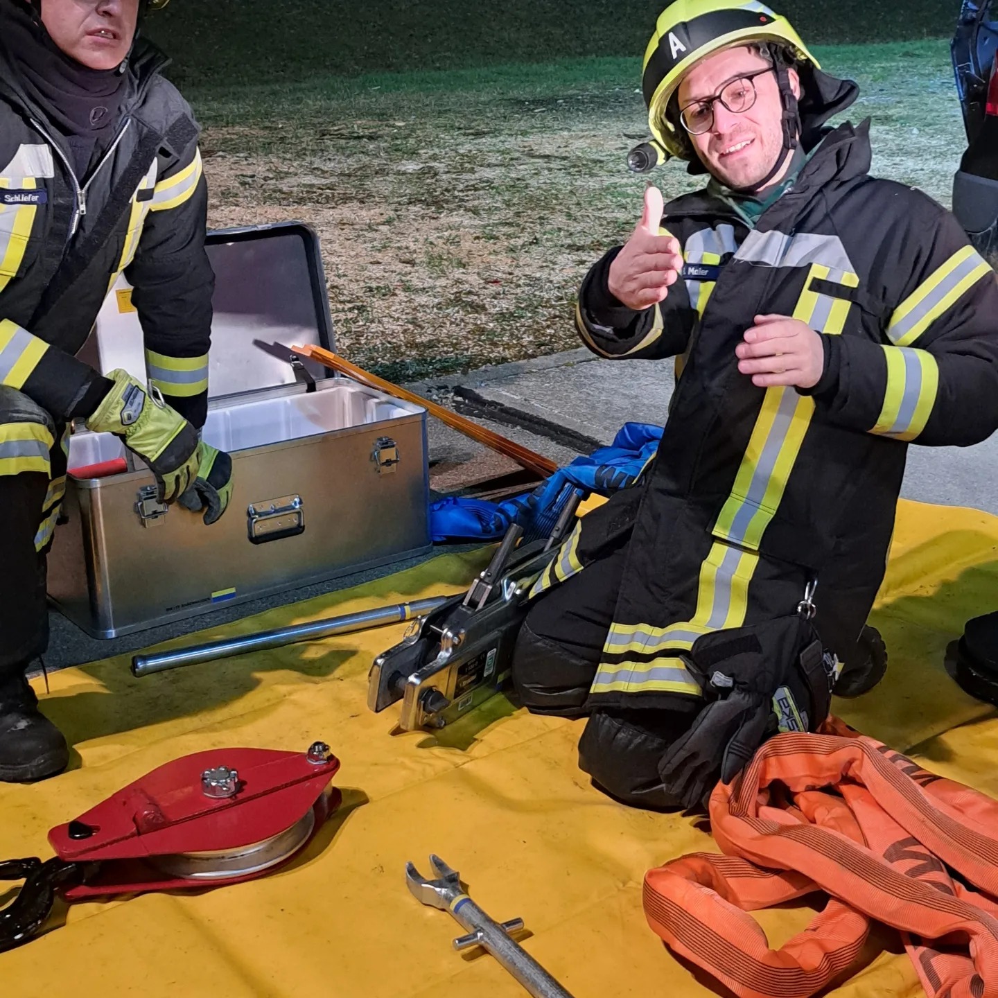 In der heutigen Übung haben wir mit Hilfe von Umlenkrollen und dem Ruckzuck versucht einen Bus zu bewegen. Der Boden war zu locker und konnte die Erdnägel nicht halten. Daher musste der Rüstwagen mit seiner Seilwinde herhalten.