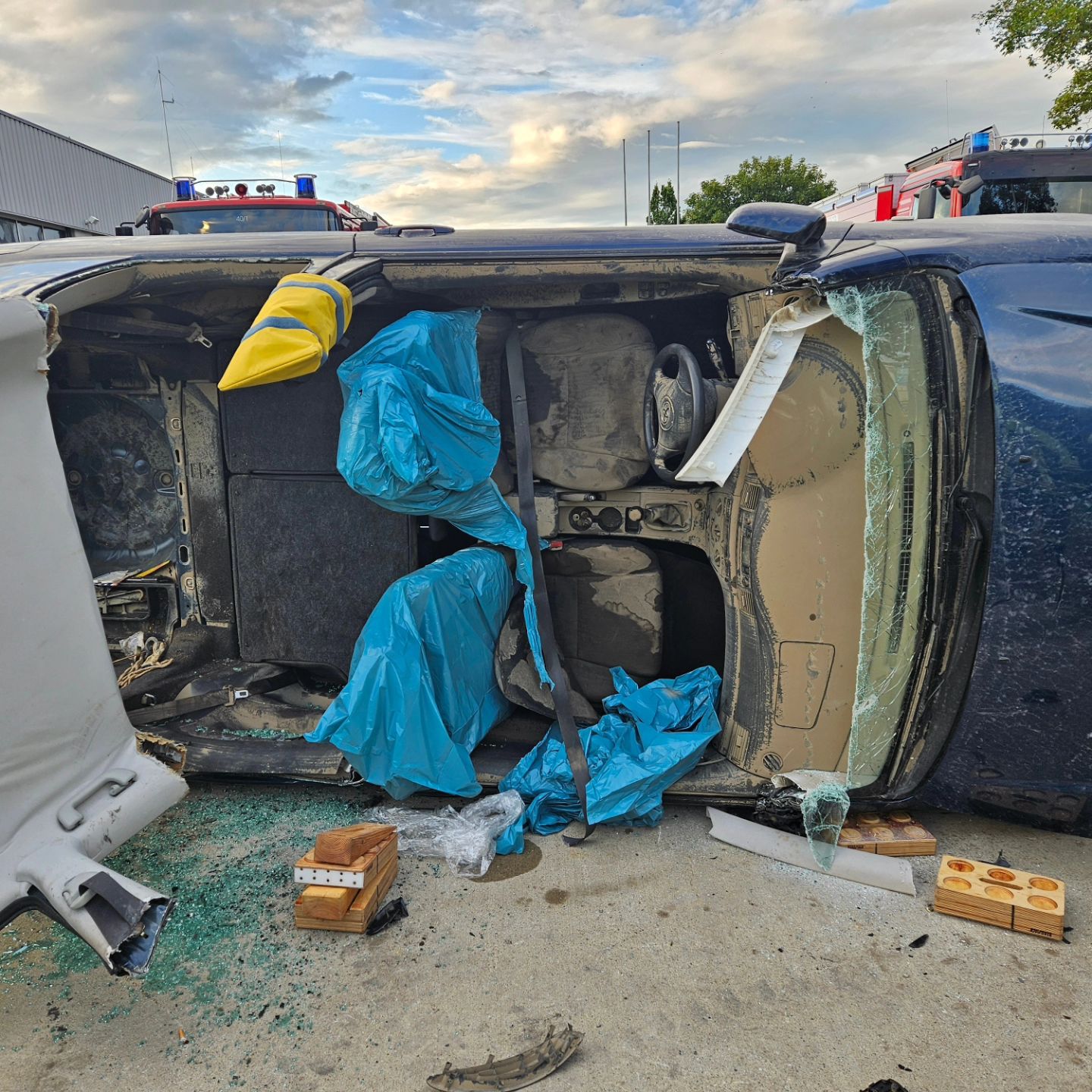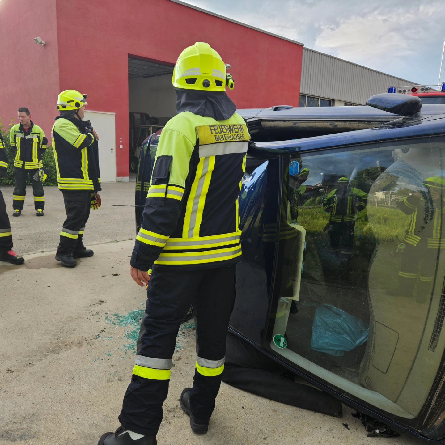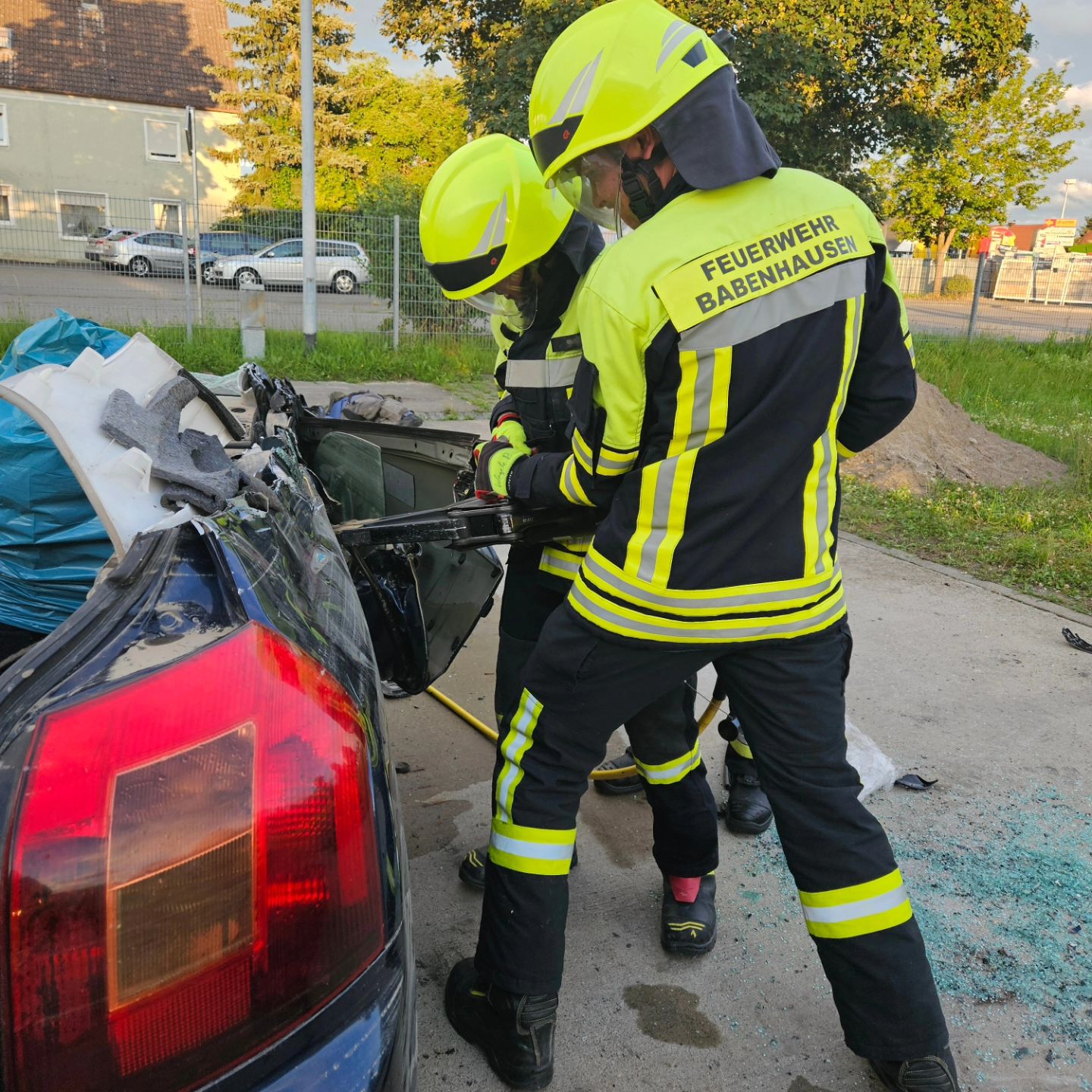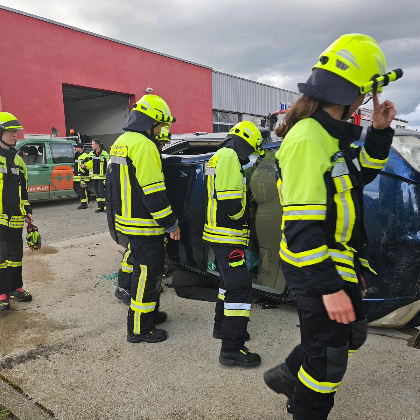 Die Übung bestand darin zwei verunfallte Personen aus einen Auto zu befreien. Das Auto wurde durch Unterbauung und diversen Stabfast gesichert. Die Patienten wurden von Kameraden betreut und dann durch den Einsatz von Schere und Spreizer befreit.