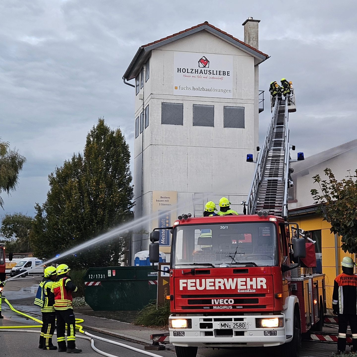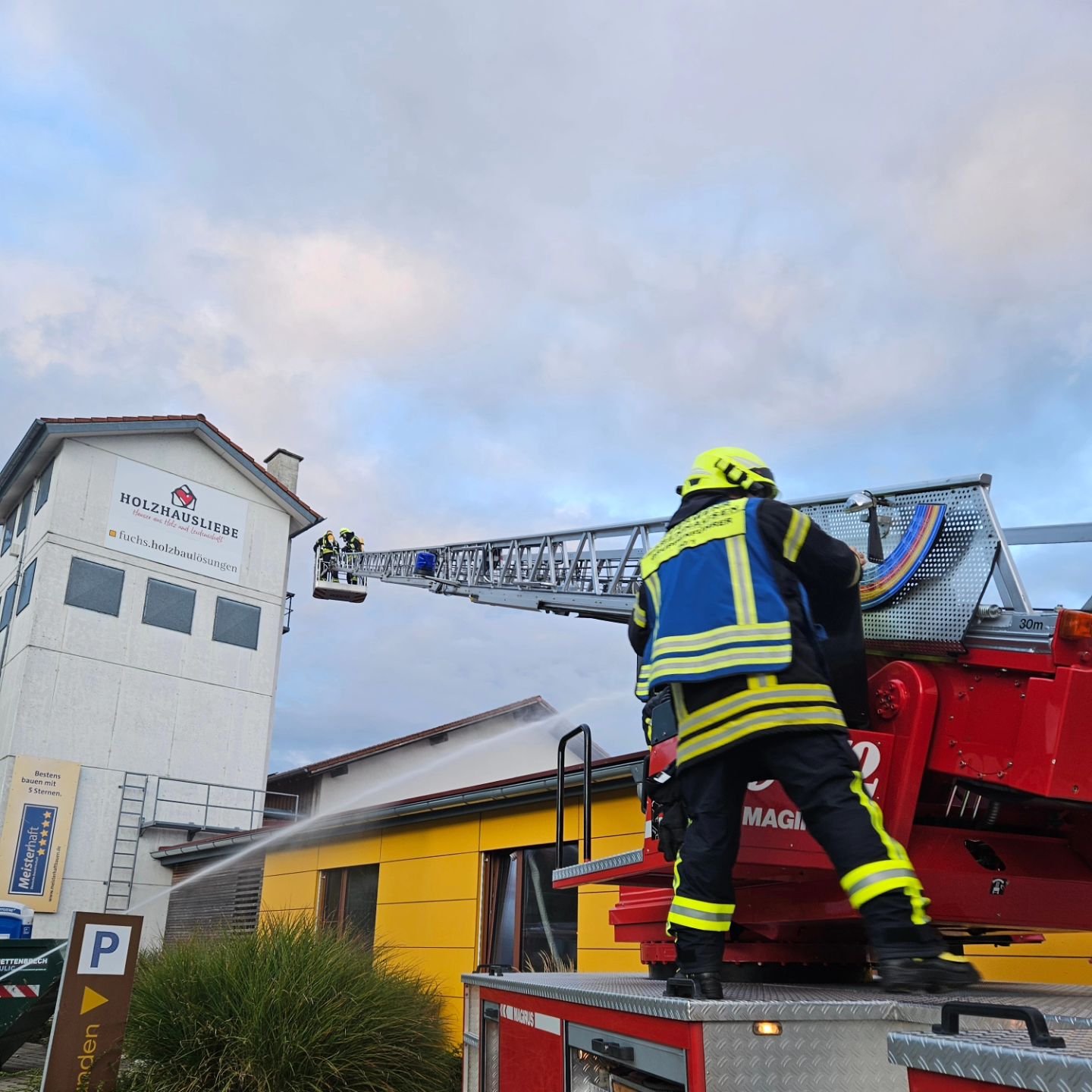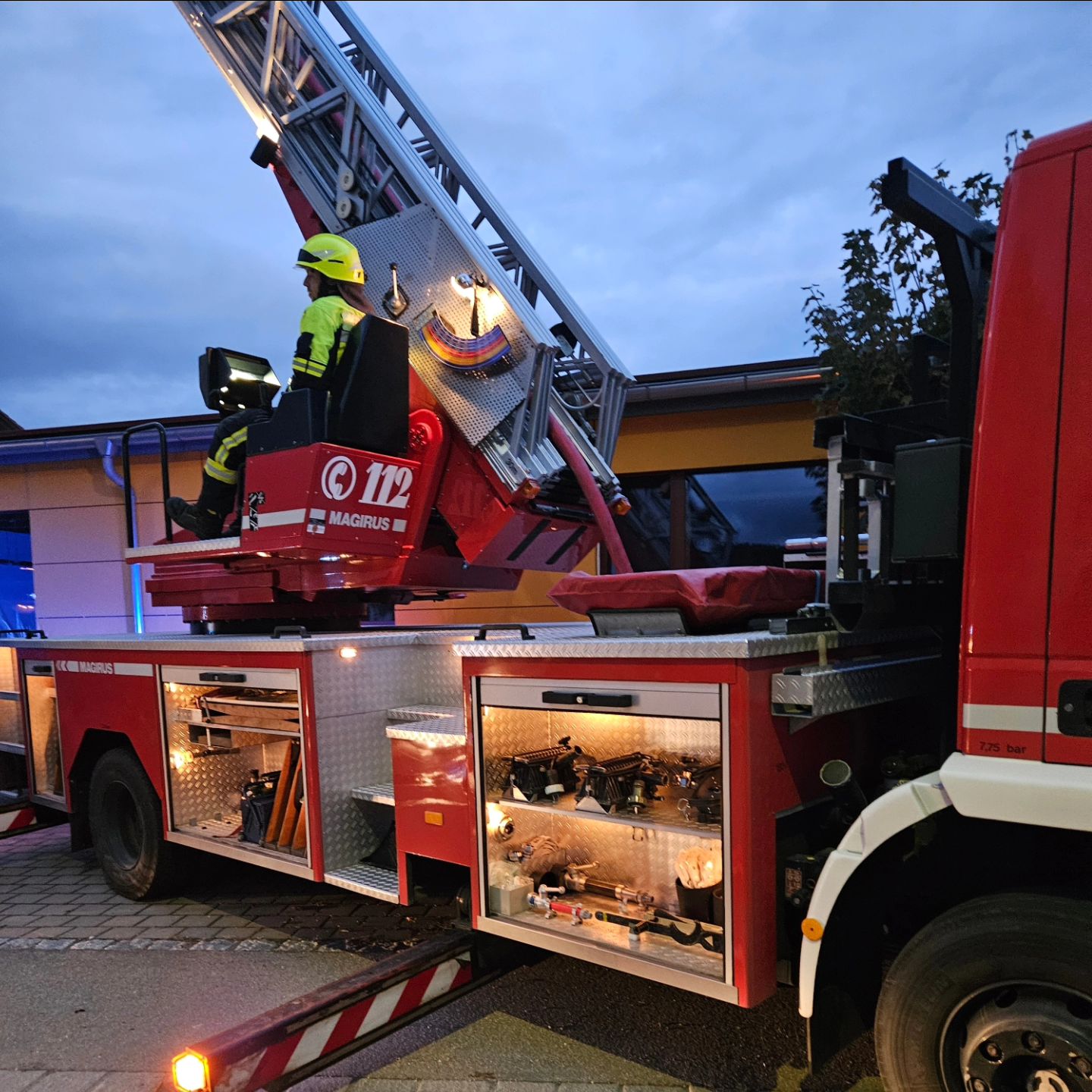 Heute durften wir in Kettershausen bei einer Großübung teilnehmen. Zusammen mit über 90 Kameraden wurden insgesamt 5 Personen aus dem rauchenden Gebäude gerettet. Unser 11/1 durfte die Atemschutzüberwachung übernehmen und organisieren, mit der Drehleiter wurden 2 Personen unter Atemschutz gerettet.