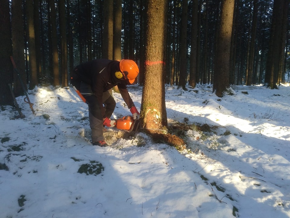 Hier lernen die Teilnehmer den Umgang mit der Motorsäge, das Fällen der Bäume und den Umgang mit Sturmschäden.