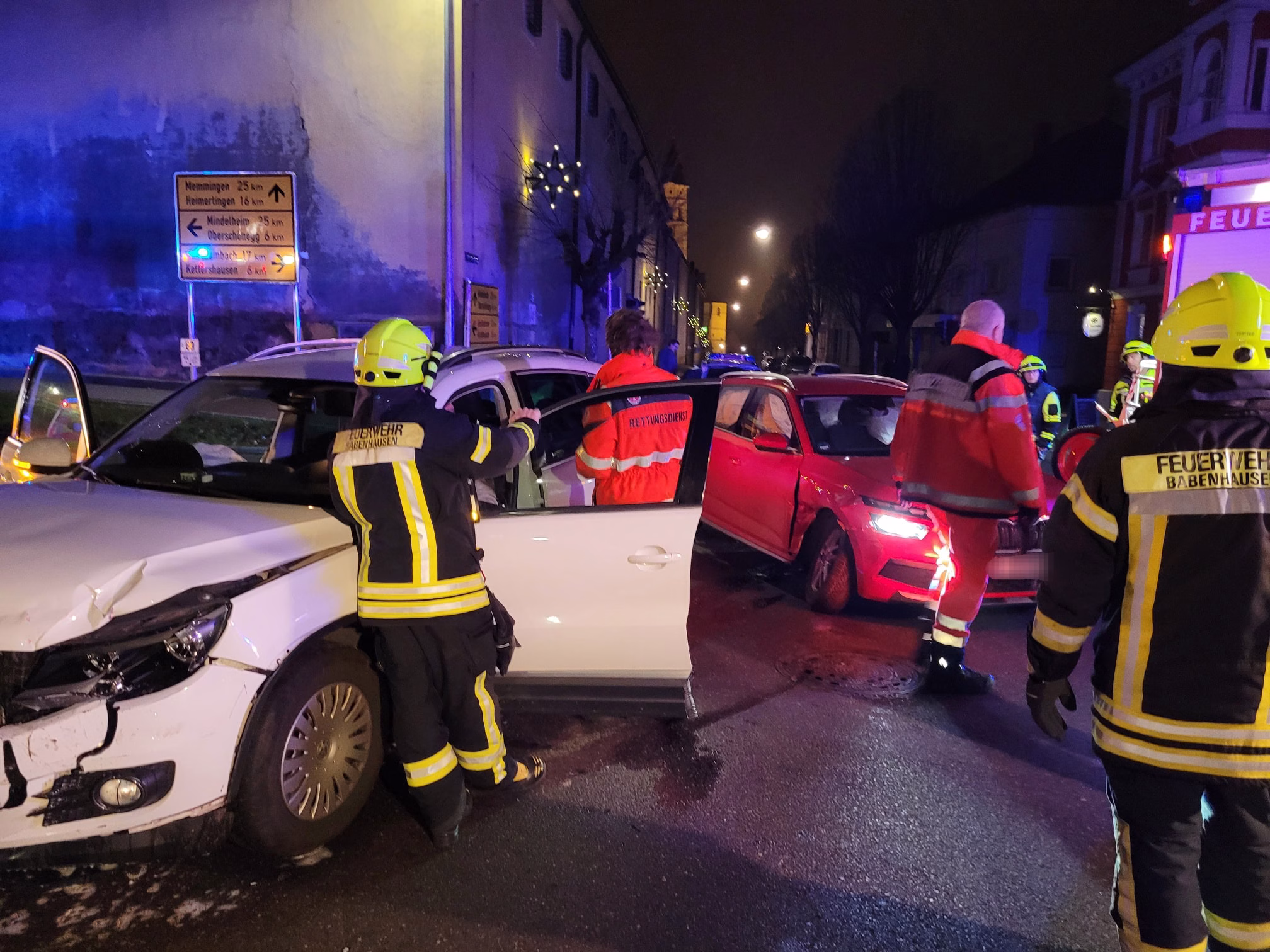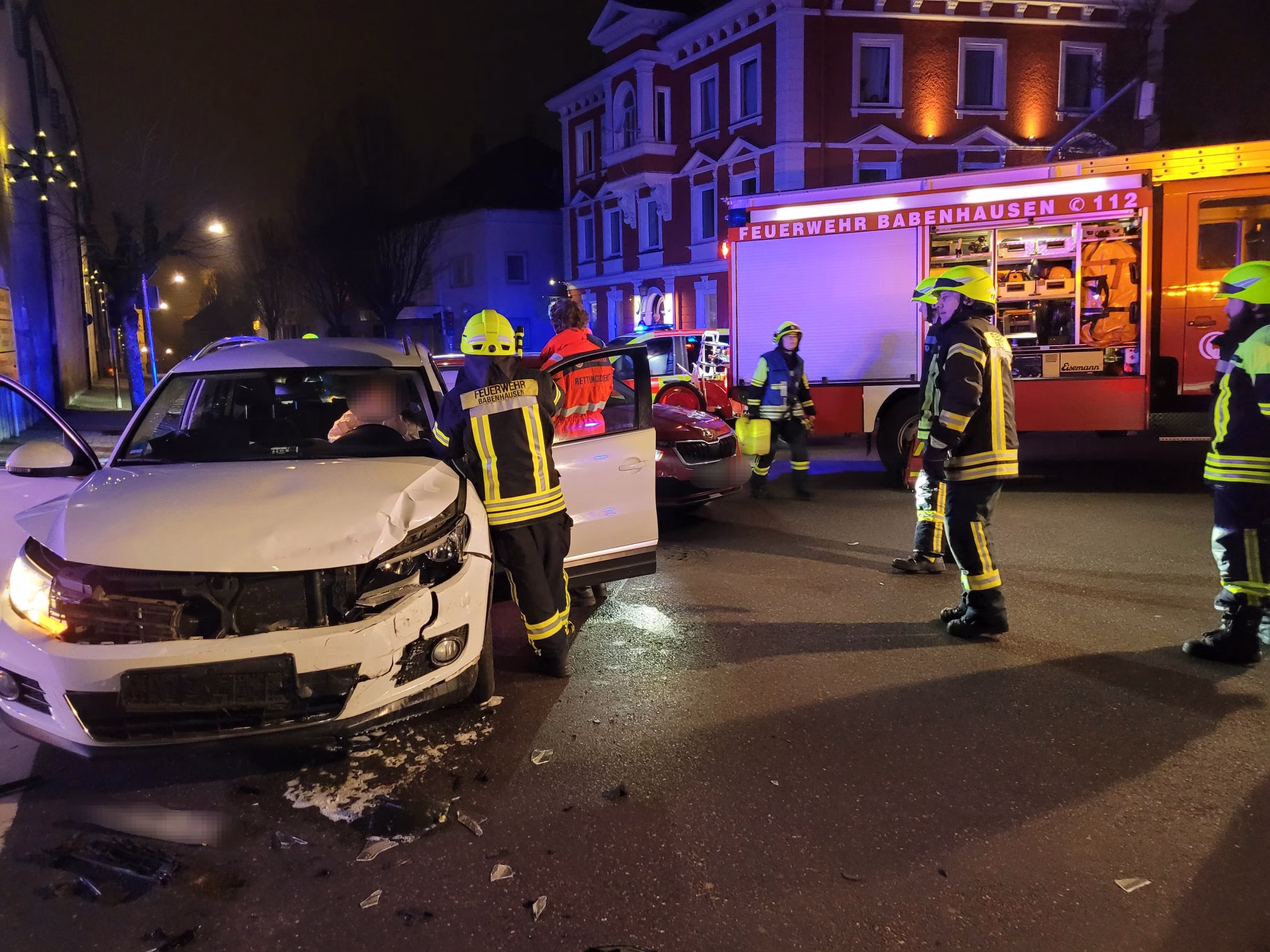 Gestern Abend ereignete sich in Babenhausen an der Lindenkreuzung ein Verkehrsunfall mit zwei beteiligten PKWs. Wir rückten aus und übernahmen die Erste Hilfe Maßnahmen, die Verletzenbetreuung bis zum Eintreffen des Rettungsdienstes, die Verkehrsabsicherung und das Abbinden auslaufender Betriebsstoffe. Außerdem leuchteten wir die Einsatzstelle aus. Nach eineinhalb Stunden konnten wir zum Feuerwehrgerätehaus zurückkehren.