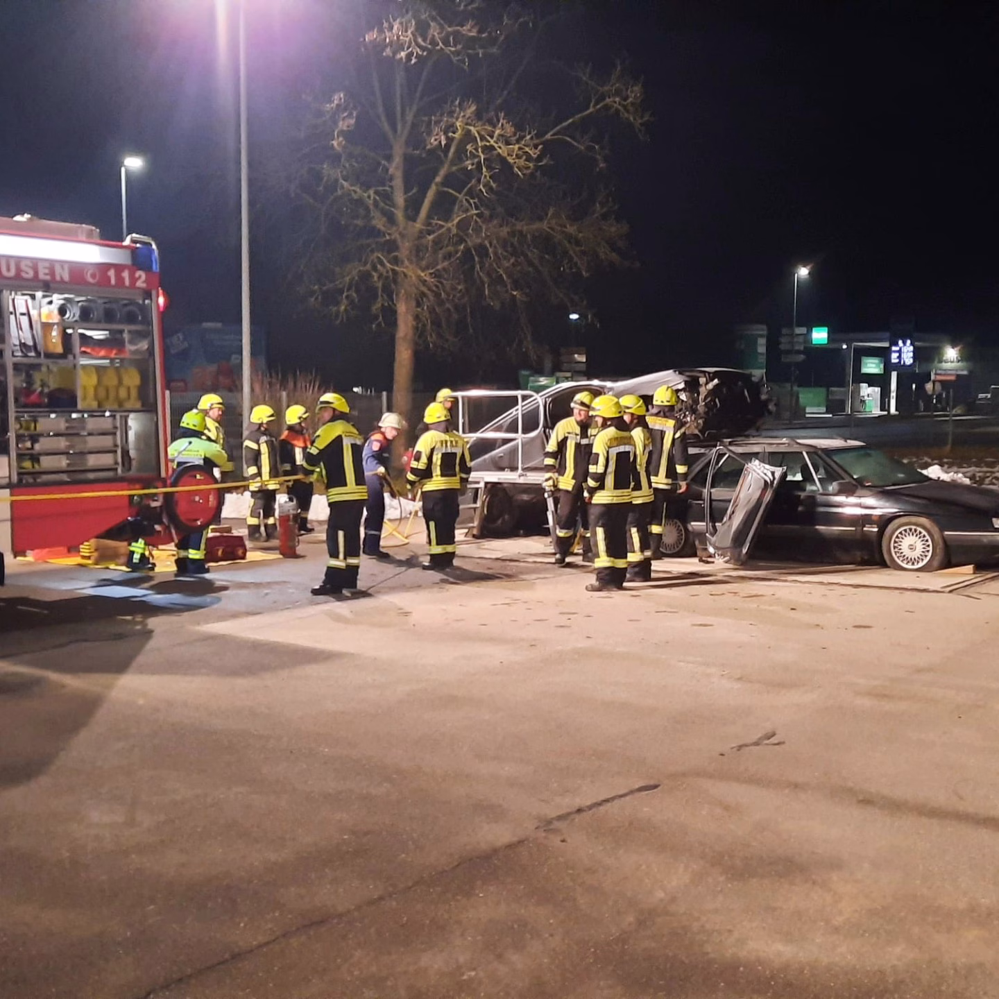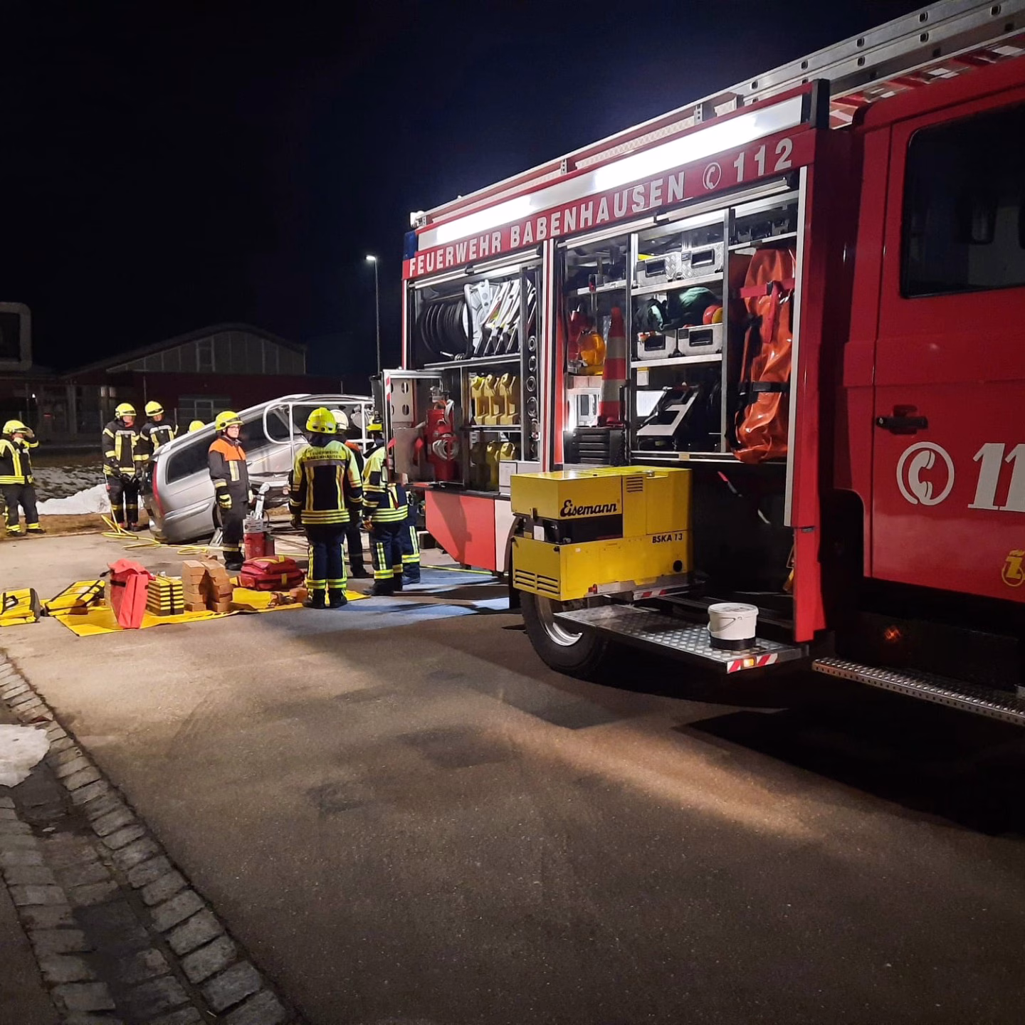 An der zweiten Station wurde ein Verkehrsunfall nachgestellt. Die Autos mussten unter erschwerten Bedingungen fixiert werden.
